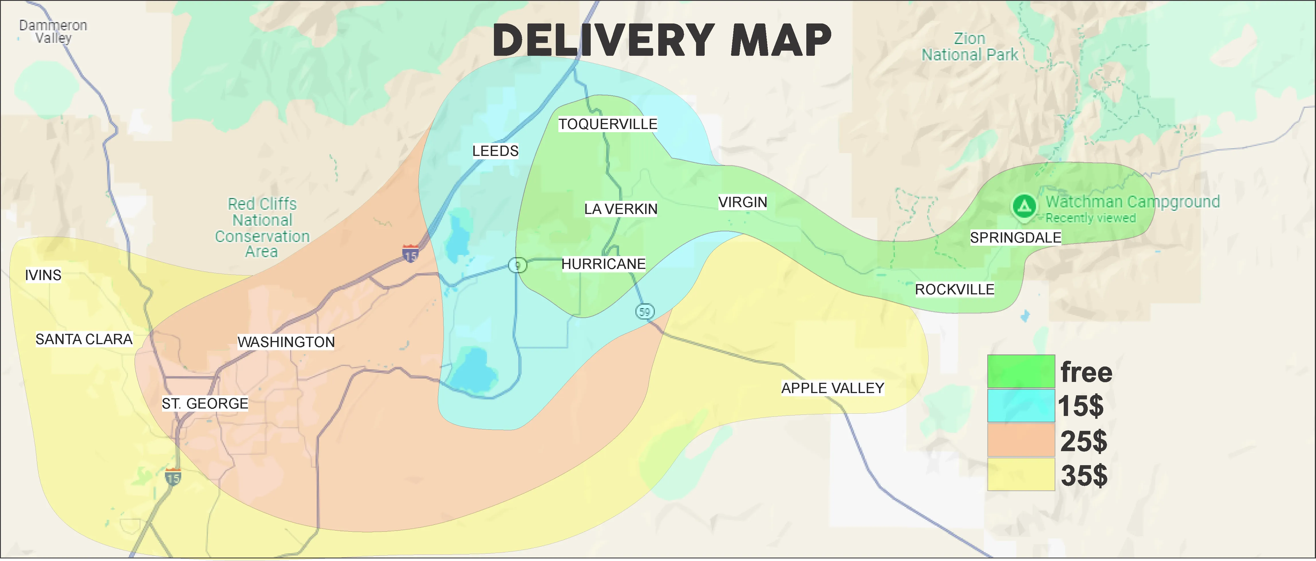 We will deliver to anywhere in Springdale/Zion Canyon for free.